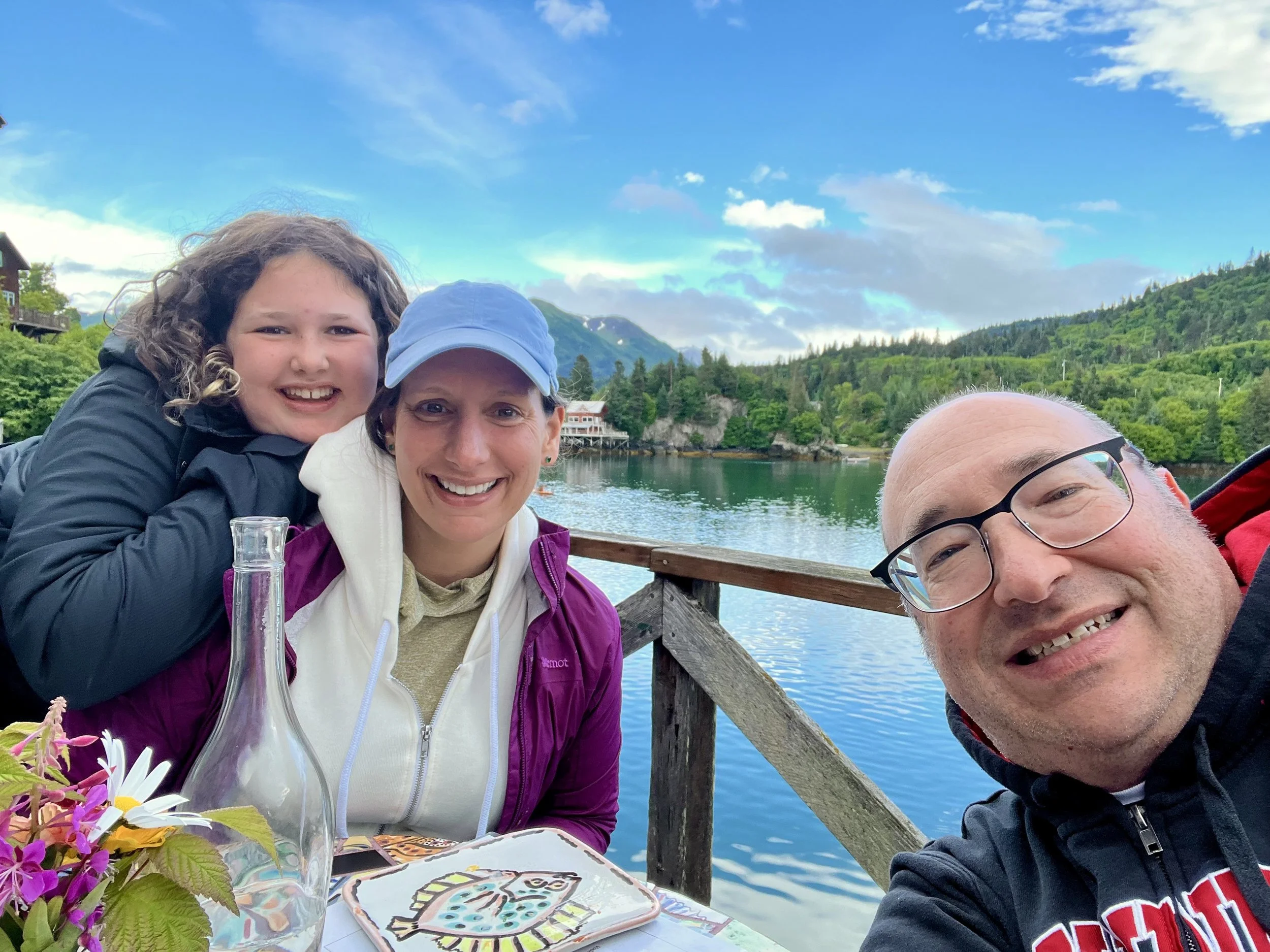 Sarah, Mike, and Louise in Halibut Cove, Alaska